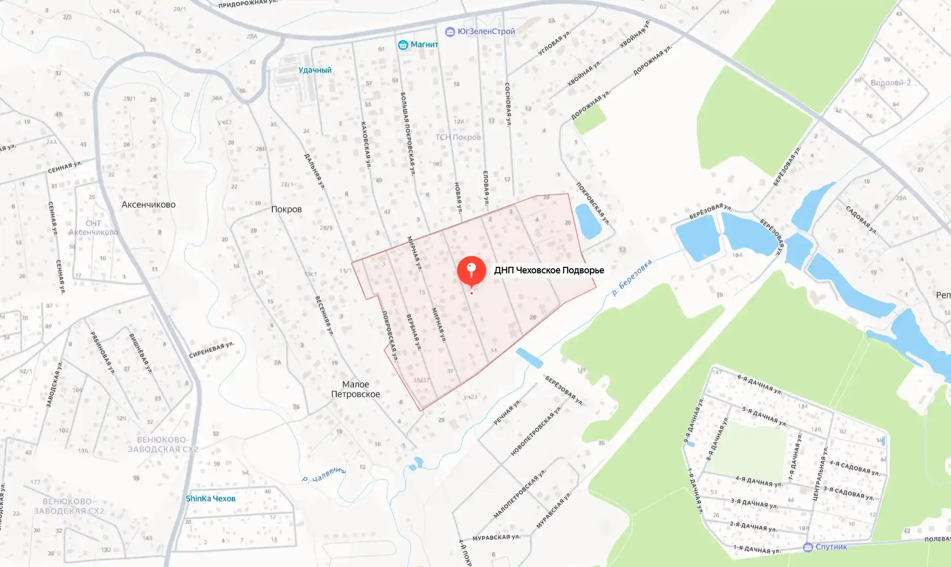 г. Чехов, 54 км от МКАД по Симферопольскому шоссе. Поселки: ДНП Покров (Чеховское подворье) и КП «Ходаевские дачи». Также строительство на вашем участке возможна в юго западной части Московской области.